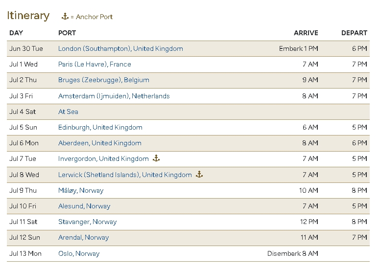 England to Oslo, Norway cruise on Oceania Sirena