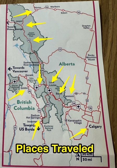 🍁Canmore – Snow enhanced our breathtaking mountain views as we traveled from Hinton to Jasper National Park, the Icefield Parkway, Banff National Park, and onward to Canmore for a fireside lunch. Our final destination today was downtown Calgary.